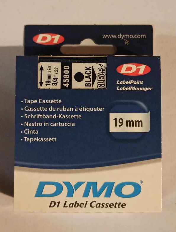 Kleepkirjalint Dymo D1 45800 19mmx7m mus/läbipaistval