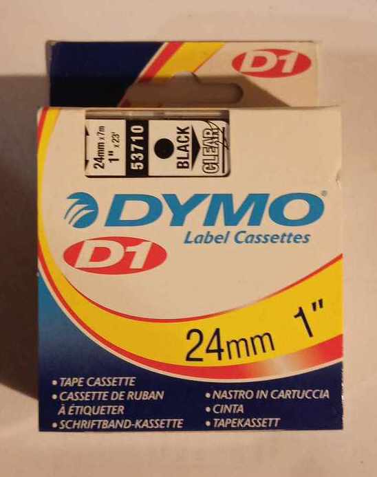 Kleepkirjalint Dymo D1 53710 24mmx7m mus/läbipaistval