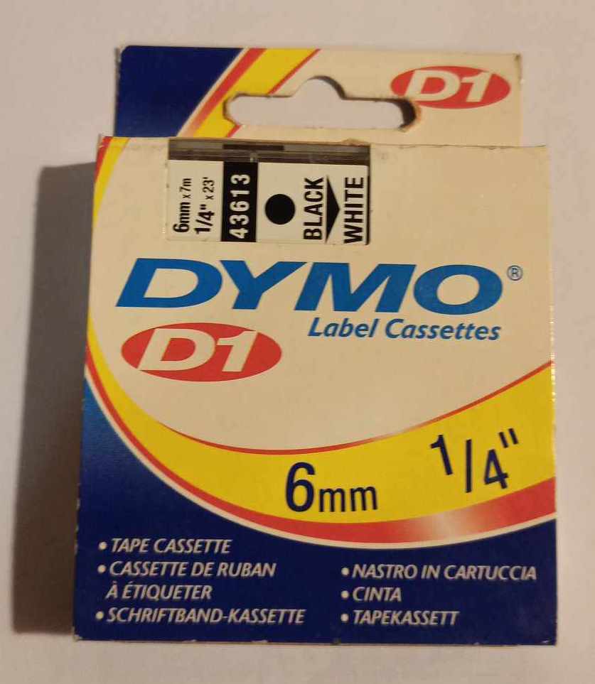 Kleepkirjalint Dymo D1 43613 6mmx7m must/valgel