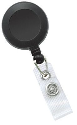 Kinnitusklambriga must 32 mm läbimõõduga yoyo kaardi- või võtmehoidja.