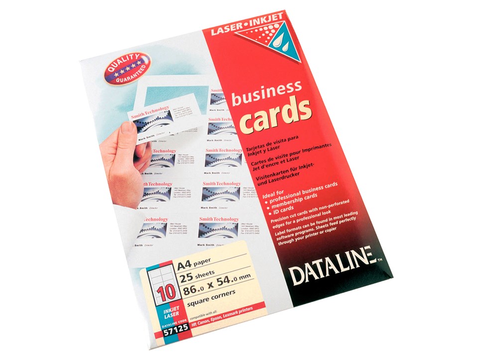 Visiitkaardipaber A4 Dataline 86x54mm, 195g tindi- ja laserprinterile ning koopiamasinale.